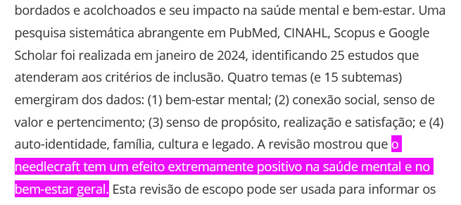 “Os efeitos das intervenções baseadas em artesanato na saúde mental e no bem-estar: uma revisão sistemática.”³