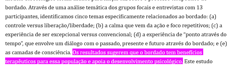 “Aspectos terapêuticos do bordado na arteterapia sob a perspectiva de jovens mulheres em uma ‘escola interna pós-hospitalar’.”²